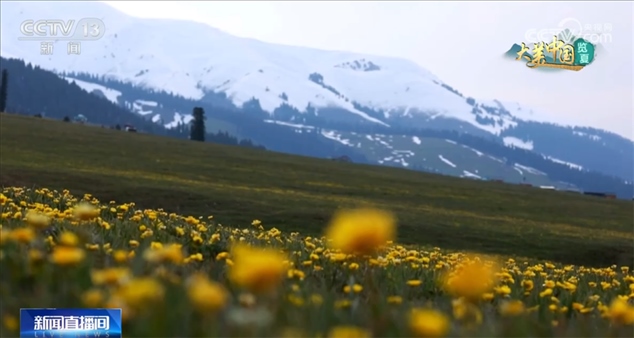 進(jìn)入六月中旬,新疆伊犁河谷氣溫逐步上升,地處天山山脈深處、海拔1800米以上的那拉提草原也迎來(lái)了一年中最美的季節(jié)。此時(shí),天山積雪未融,在雪山的環(huán)抱中,這片30多萬(wàn)畝的高山草甸已是碧綠如翠玉。美麗的金蓮花迎風(fēng)開(kāi)放,好似給夏日草原鋪上了一層金色地毯。近年來(lái),那拉提草原實(shí)施生態(tài)禁牧,草原植被得到極大恢復(fù)。