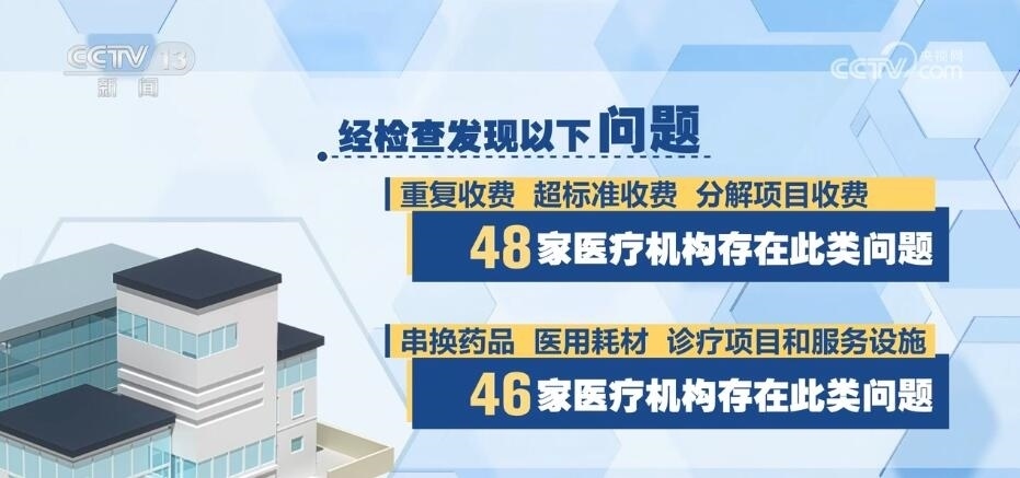 國家飛檢組共抽查了48家定點(diǎn)醫(yī)療機(jī)構(gòu),包括三級(jí)公立醫(yī)院40家、三級(jí)民營醫(yī)院3家、二級(jí)以下民營醫(yī)療機(jī)構(gòu)5家,經(jīng)檢查發(fā)現(xiàn)以下問題:一、重復(fù)收費(fèi)、超標(biāo)準(zhǔn)收費(fèi)、分解項(xiàng)目收費(fèi),48家醫(yī)療機(jī)構(gòu)存在此類問題。二、串換藥品、醫(yī)用耗材、診療項(xiàng)目和服務(wù)設(shè)施,46家醫(yī)療機(jī)構(gòu)存在此類問題。三、將不屬于醫(yī)?;鹬Ц斗秶尼t(yī)藥費(fèi)用納入醫(yī)?;鸾Y(jié)算,43家醫(yī)療機(jī)構(gòu)存在此類問題。四、違反診療規(guī)范過度診療、過度檢查、超量開藥,39家醫(yī)療機(jī)構(gòu)存在此類問題。此外,部分醫(yī)療機(jī)構(gòu)存在分解住院,藥品、醫(yī)用耗材進(jìn)銷存不符,未嚴(yán)格執(zhí)行國家組織藥品耗材集中帶量采購政策,按病種付費(fèi)模式下高靠病組、低標(biāo)準(zhǔn)入院等其他違法違規(guī)問題;一些醫(yī)療機(jī)構(gòu)存在虛構(gòu)醫(yī)藥服務(wù)項(xiàng)目問題。