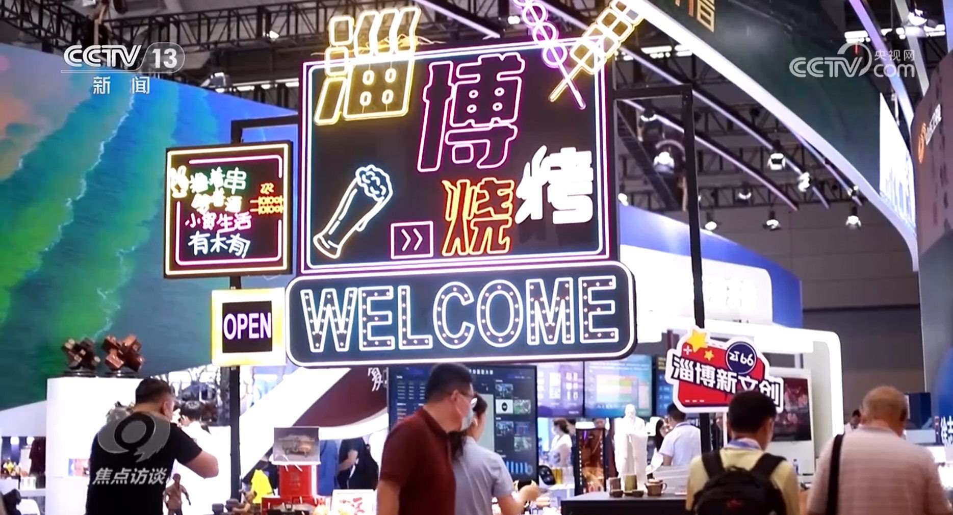 要說本次文博會最吸引人的展位,淄博燒烤算一個(gè)??墒牵瑹驹趺催M(jìn)了文博會?原來,這是一個(gè)2.8米長的軟陶泥塑微縮景觀,生動(dòng)還原了淄博燒烤的現(xiàn)實(shí)場景。此外,展臺上的琉璃燒烤大餐也吸引了不少人拍照打卡。當(dāng)然,現(xiàn)場還是有可以吃的美食——大名鼎鼎的山東煎餅。