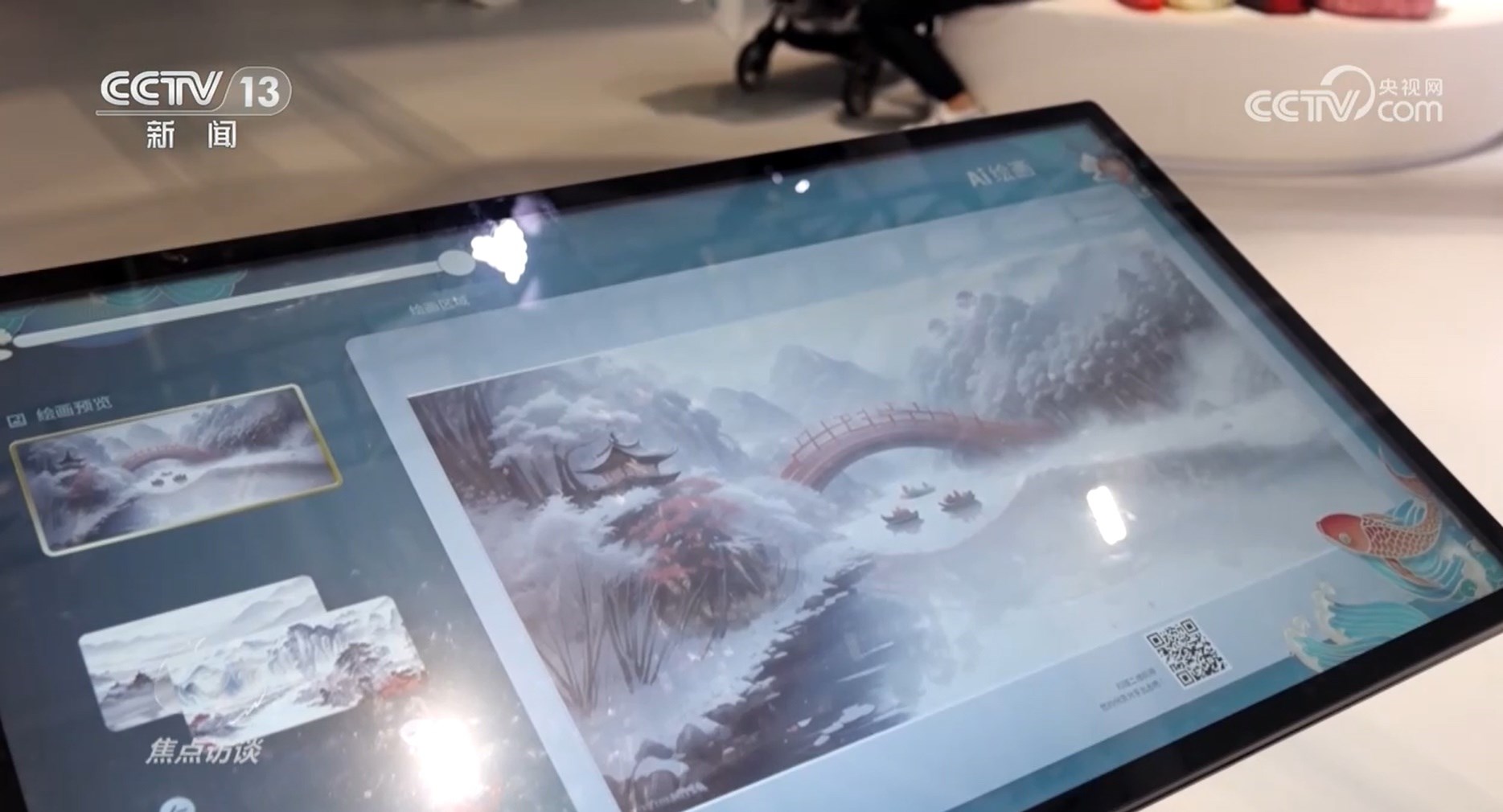 體驗(yàn)一把AI繪畫是很多觀展小朋友的愿望,從一名繪畫小白變成國畫大師需要多久?文博會給我們的答案是5秒。深圳某科技公司剛剛研發(fā)出的AI作畫機(jī),根據(jù)用戶畫出的圖案不斷進(jìn)行造型演變,展開豐富聯(lián)想最終創(chuàng)作合成出國風(fēng)山水畫作。