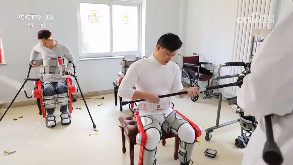 邵海鵬和胡曉雷穿戴的都是由北京大艾研發(fā)的外骨骼康復(fù)機(jī)器人。這是中國首個通過國家藥品監(jiān)督管理局認(rèn)證的下肢外骨骼機(jī)器人。目前,外骨骼康復(fù)機(jī)器人已成為治療脊椎損傷、下肢截癱、偏癱等重大惡性疾病的有效工具。