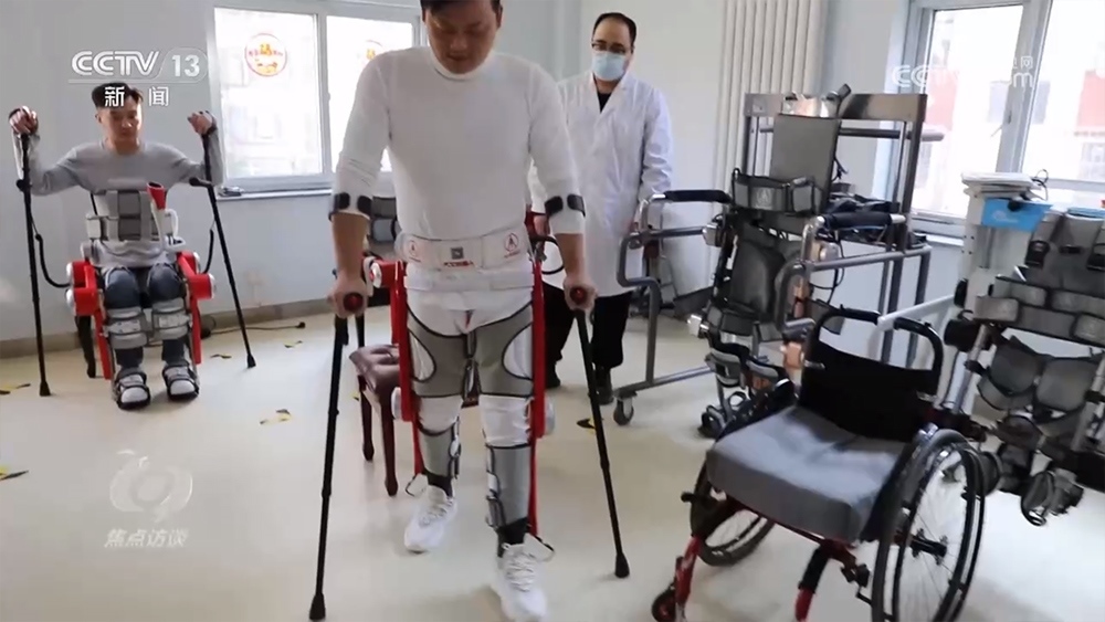 北京大艾機(jī)器人科技有限公司董事長、北京航空航天大學(xué)教授帥梅:“就是通過外骨骼機(jī)器人訓(xùn)練,來給他建立正確的行走模式,以及正確的本體感覺,讓他能重新行走?!?/p>