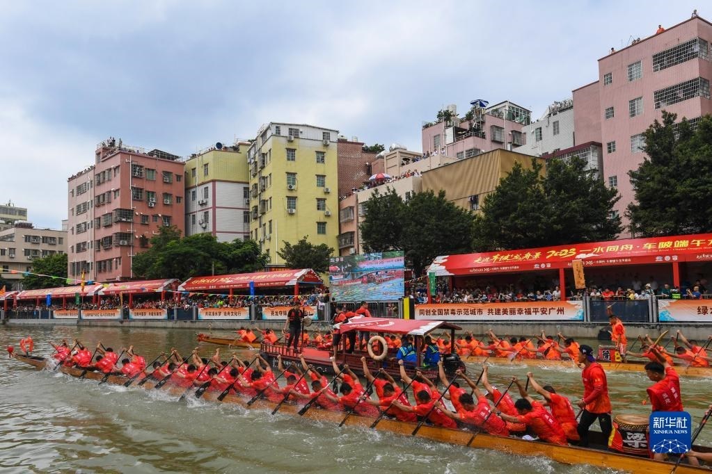 賽龍奪錦代表一種人生態(tài)度,更有著豐富的精神內(nèi)涵。對(duì)于車陂這樣的“城中村”而言,族人在端午回村里劃龍舟、吃龍船飯。龍舟如今既是留住文化記憶的重要載體,更是新都市如何留住老鄉(xiāng)愁的一份珍貴答卷。新華社記者 劉大偉 攝