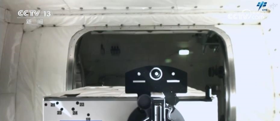 這是3位航天員正在夢天實(shí)驗(yàn)艙進(jìn)行空間輻射生物學(xué)暴露實(shí)驗(yàn)裝置出艙工作,航天員將載荷安裝到載荷轉(zhuǎn)移機(jī)構(gòu)。載荷出艙前,航天員在反復(fù)仔細(xì)檢查,隨后,關(guān)閉夢天實(shí)驗(yàn)艙貨物氣閘艙艙門。通過該裝置開展空間粒子輻射等環(huán)境要素,對樣本材料生物學(xué)效應(yīng)的研究,為科學(xué)實(shí)驗(yàn)生物樣品提供生命保障。