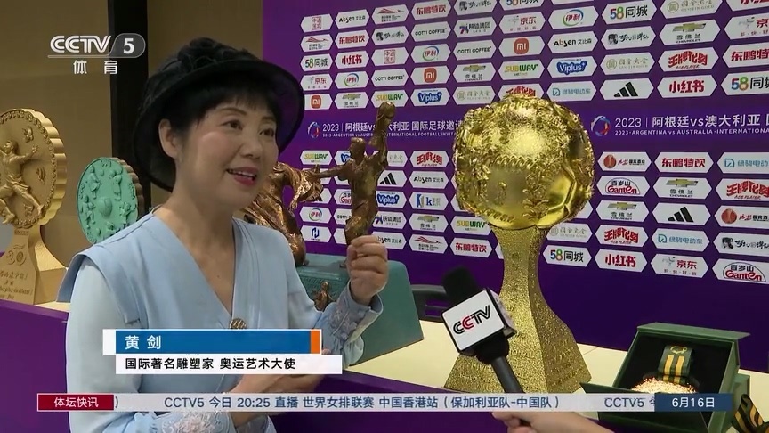 國際著名雕塑家 奧運(yùn)藝術(shù)大使 黃劍:設(shè)計(jì)的時(shí)候我在想,怎么讓這個(gè)紀(jì)念杯更加有它的魅力,既有文化內(nèi)涵,又有一種創(chuàng)新魅力。所以我就把它做成了一個(gè)音樂轉(zhuǎn)動(dòng)的雕塑紀(jì)念杯,想讓球王梅西拿著有一種珍藏的心。