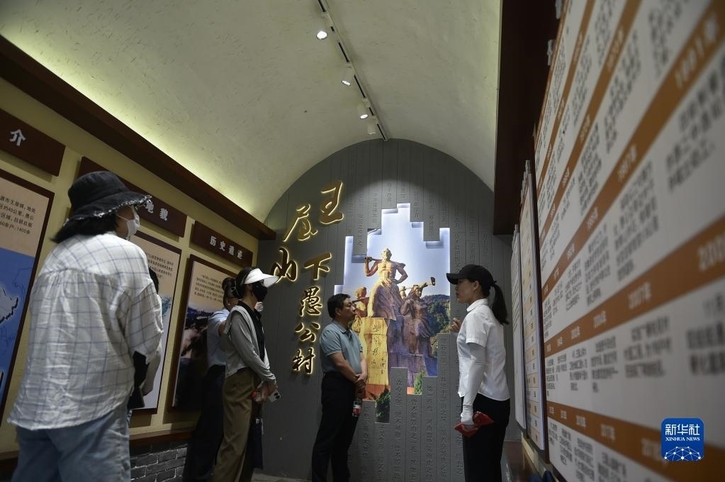 6月15日,游人在王屋山腳下的愚公村村史館里參觀。