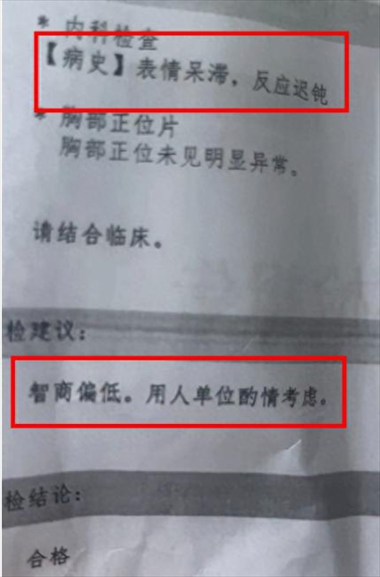 ·江蘇一醫(yī)院出具報(bào)告稱體檢者“智商偏低”?衛(wèi)健委工作人員:正在多方面了解該事件,調(diào)查該體檢報(bào)告的真?zhèn)巍?/p>