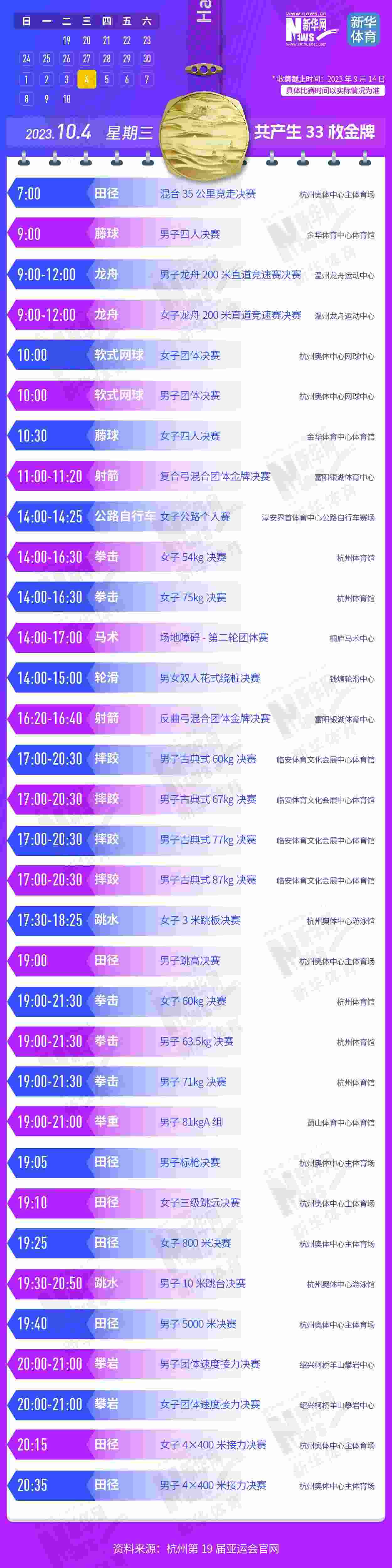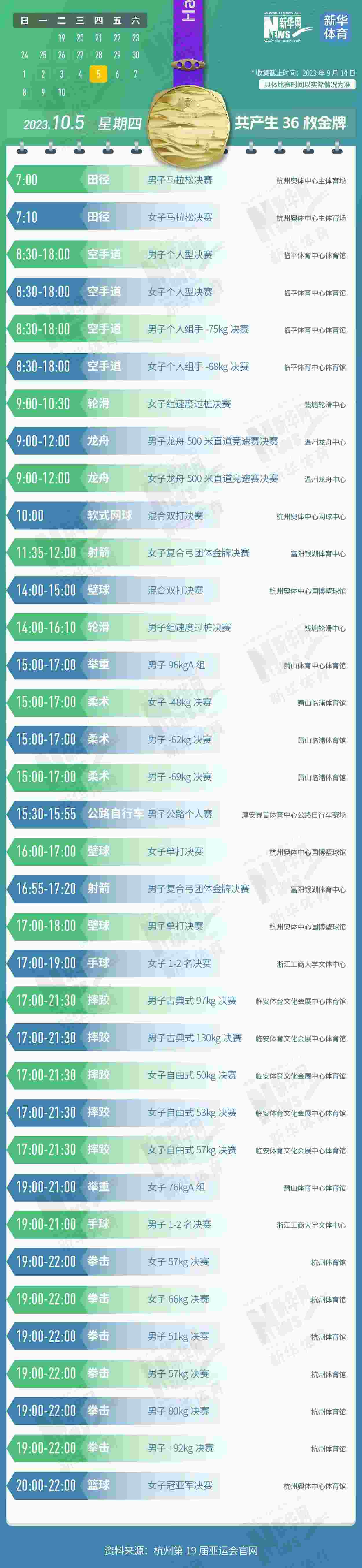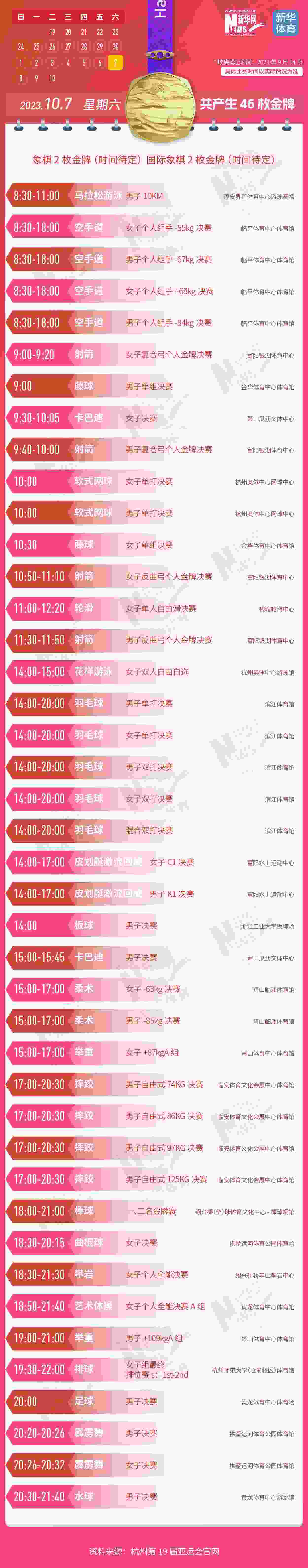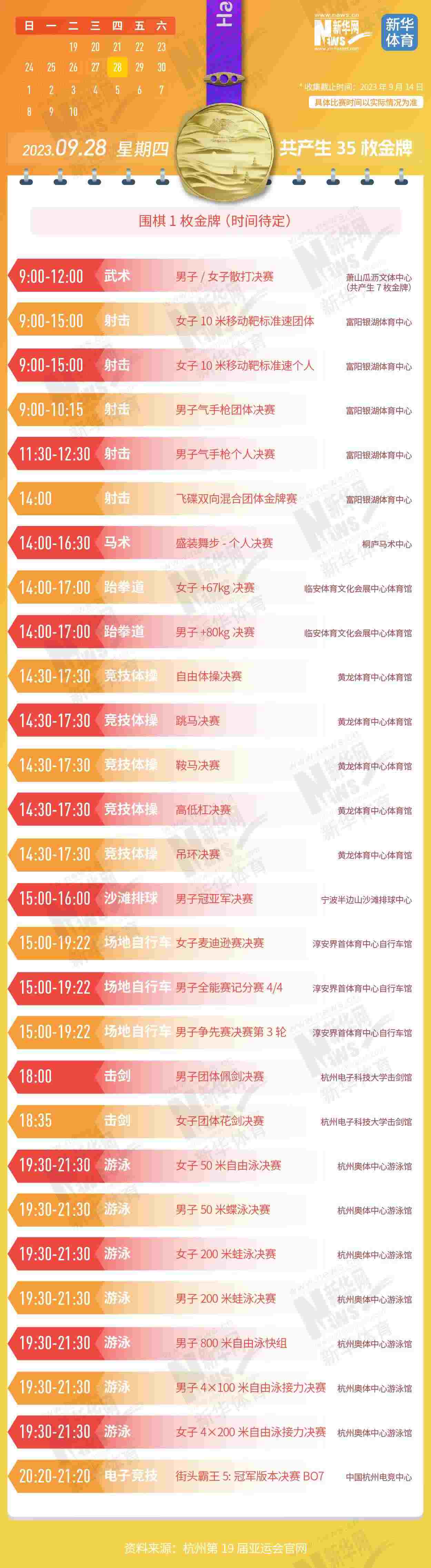 杭州第19屆亞運(yùn)會(huì)即將開幕。本屆亞運(yùn)會(huì)將產(chǎn)生481枚金牌,快收藏這份金牌賽事日歷,助你精準(zhǔn)觀賽!
