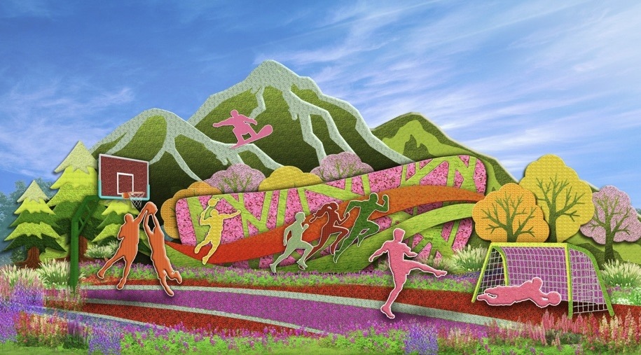 6,西單東北角的“全民健身”花壇頂高8.5米,以豐富多彩的全民健身為題材,配以籃球、羽毛球、跑步、滑雪等運(yùn)動(dòng)場景,寓意全民健身共享美好生活。