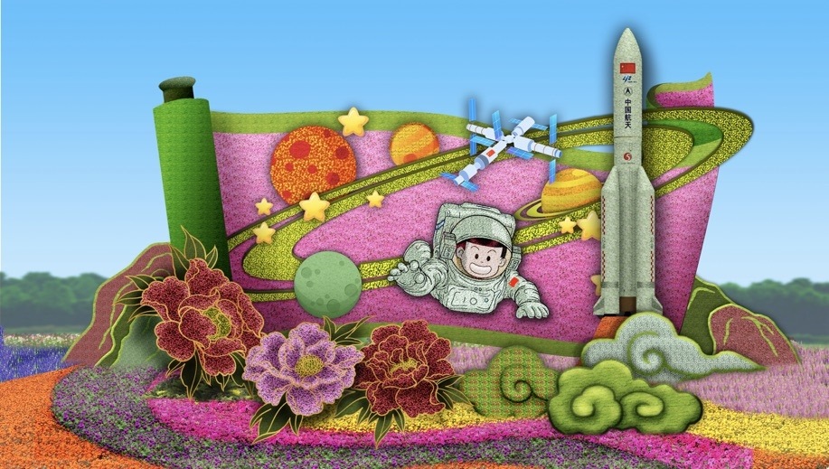 10,復(fù)興門東北角的“筑夢未來”花壇頂高8.5米,以中國航天員、空間站為主景,寓意航天強(qiáng)國建設(shè)蓬勃發(fā)展,助力中國夢早日實(shí)現(xiàn),全面推進(jìn)中華民族偉大復(fù)興,譜寫新時(shí)代中國特色社會(huì)主義更加絢麗的華章。
