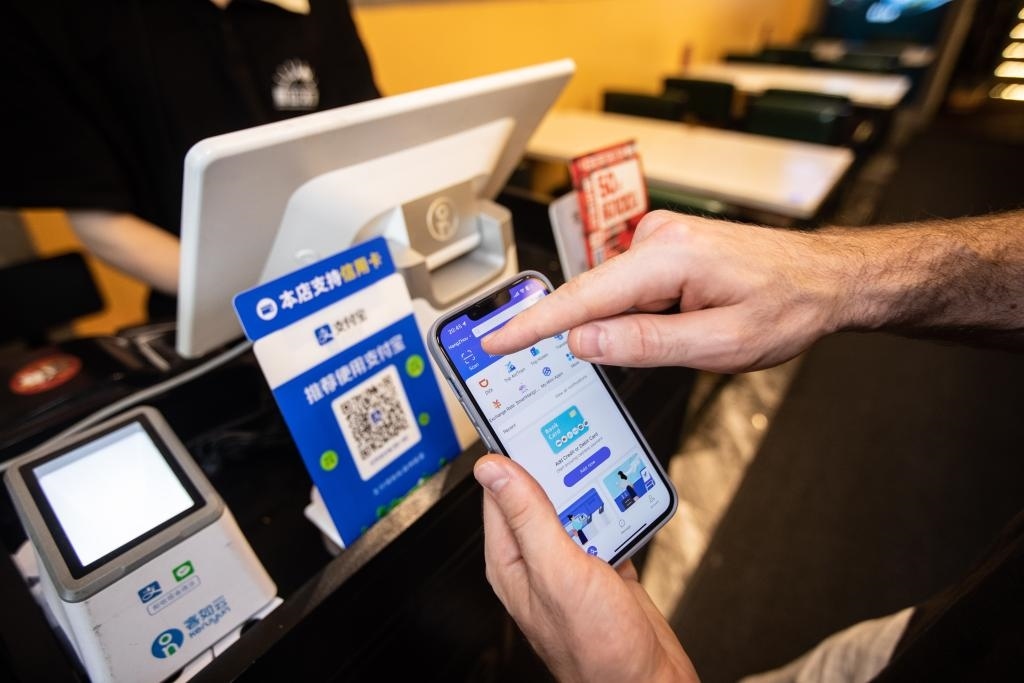 圖為外國(guó)游客在杭州使用電子支付軟件。(受訪者供圖)