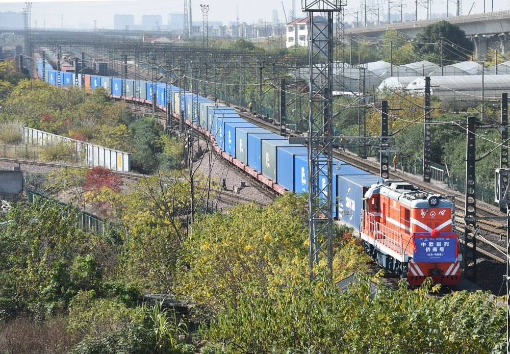 ↑2021年11月23日,“僑商號”中歐(義新歐)班列從鐵路義烏西站出發(fā)。