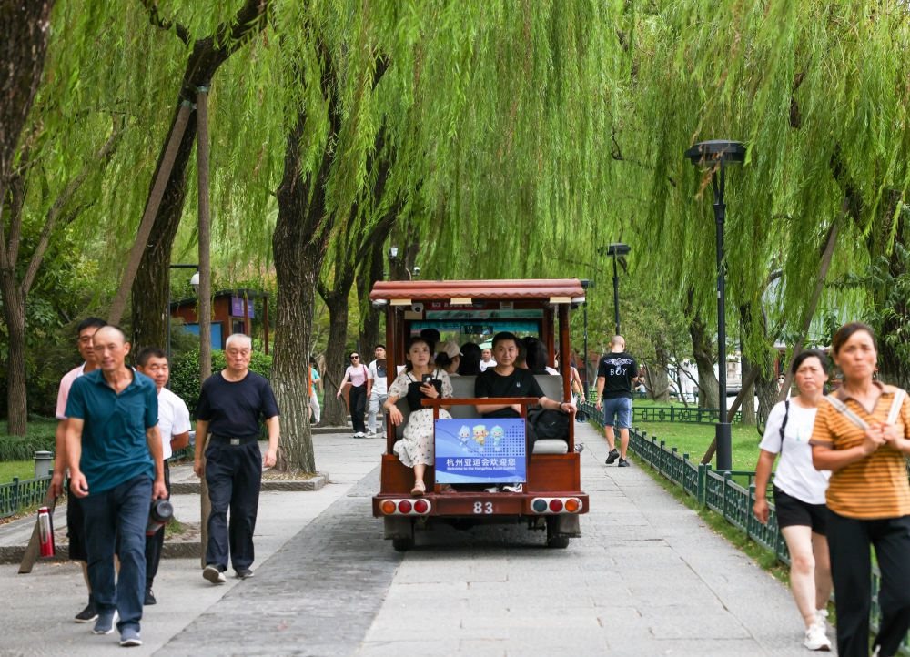 9月20日,游客乘坐杭州西湖景區(qū)觀光車(chē)游覽。新華社記者顏麟蘊(yùn) 攝