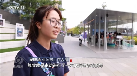 亞運(yùn)村工作人員吳軼涵:“徽章交換中心建筑本身就是以低碳的材料制作而成的,同時(shí)也制作了以低碳材料而制作的徽章,這些徽章給運(yùn)動(dòng)員交換使用。所以每次在這里完成一次徽章交換其實(shí)就是主動(dòng)進(jìn)行了一次低碳理念的倡導(dǎo)?!?/p>