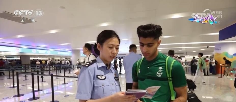 記者看到,在杭州機(jī)場口岸入境現(xiàn)場,杭州邊檢站設(shè)置了中英文對照的亞運(yùn)會通關(guān)指示標(biāo)識。配備了具備泰語、韓語、日語、阿拉伯語等多語種能力的檢查員,并在現(xiàn)場向入境的運(yùn)動員發(fā)放、介紹亞運(yùn)會服務(wù)指南。