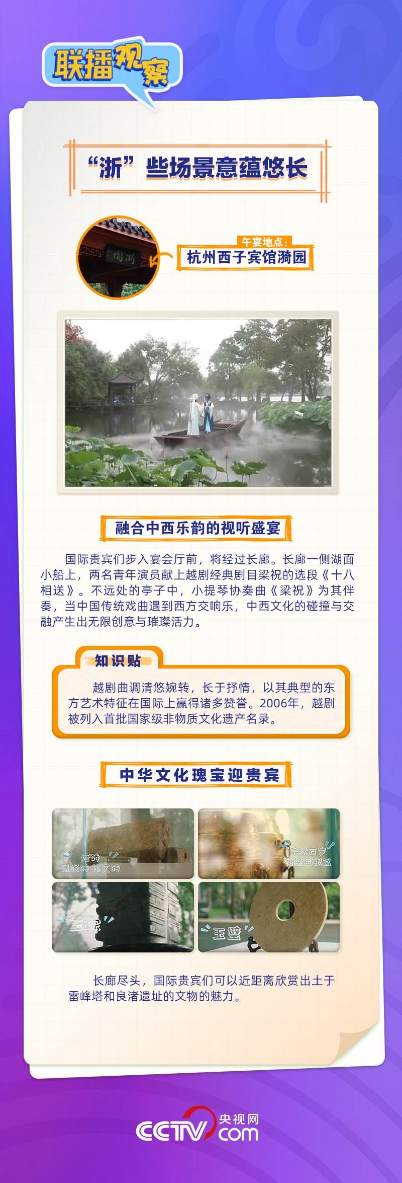 西子湖畔,丹桂飄香。通往午宴餐廳的長廊邊展示的良渚文物,午宴前休息廳內(nèi)展示的宋代點(diǎn)茶技藝等非遺項(xiàng)目,午宴餐桌上精美的江南景色雕刻、走心的杭州美景餐巾扣......杭州亞運(yùn)會(huì)賽事服務(wù)彰顯中國傳統(tǒng)與現(xiàn)代完美融合的江南氣韻。透過亞運(yùn)會(huì),世界也再次認(rèn)識(shí)活力中國,看到中國式現(xiàn)代化的萬千氣象。
