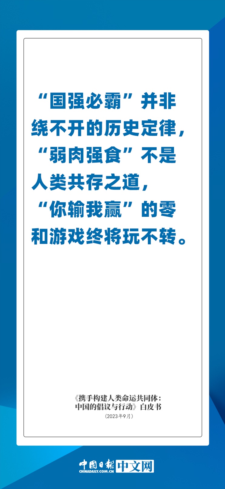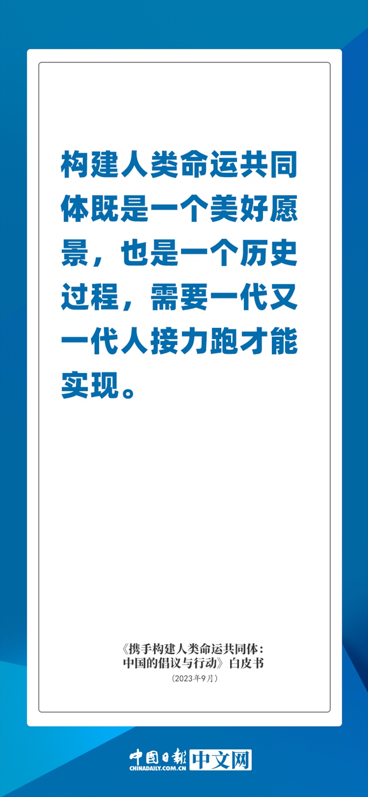 國(guó)務(wù)院新聞辦公室于2023年9月26日發(fā)布《攜手構(gòu)建人類命運(yùn)共同體:中國(guó)的倡議與行動(dòng)》白皮書(shū),發(fā)人深思催人奮進(jìn)。