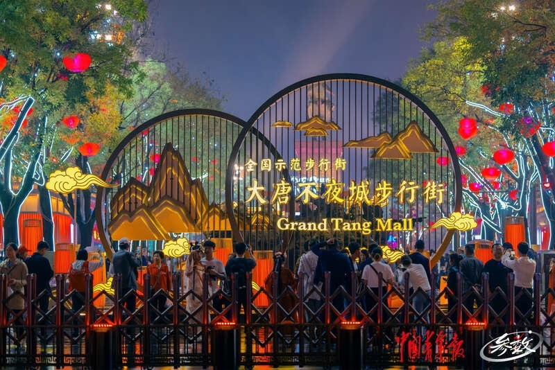 在西安,大唐不夜城步行街華燈初上,人頭攢動(dòng)。中青在線(xiàn)記者 白楊/攝