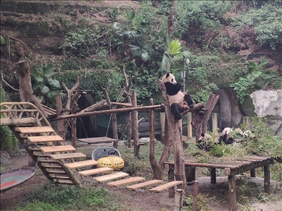 重慶動物園大熊貓新館開館,中秋節(jié)國寶大熊貓喜迎新居。