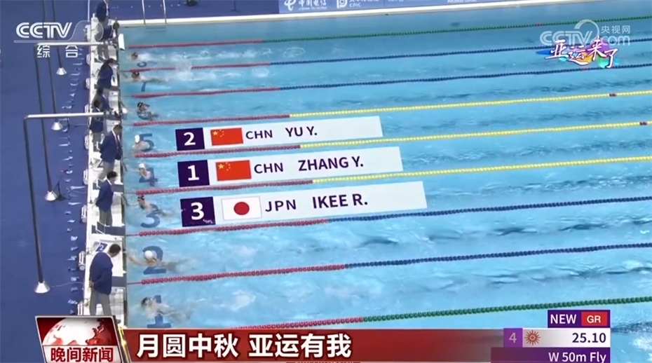 游泳賽事來到收官日,在9月29日晚進行的各項決賽中,率先出場的張雨霏用打破亞運會紀錄的成績拿到了50米蝶泳的金牌,這也是她在本屆亞運會拿到的第6枚金牌。