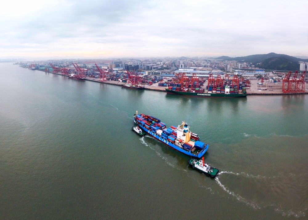 這是2023年8月21日拍攝的寧波舟山港梅山港區(qū)。新華社記者 魏一駿 攝