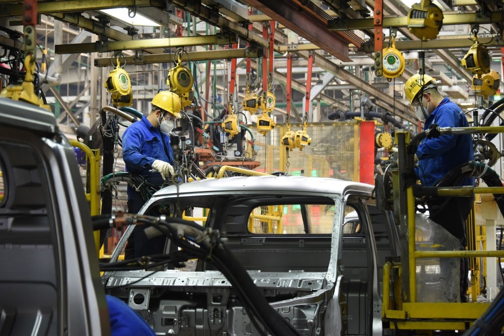 工人在山東自貿試驗區(qū)青島片區(qū)一汽車制造企業(yè)車間內生產汽車(2023年2月23日攝)。新華社記者 李紫恒 攝