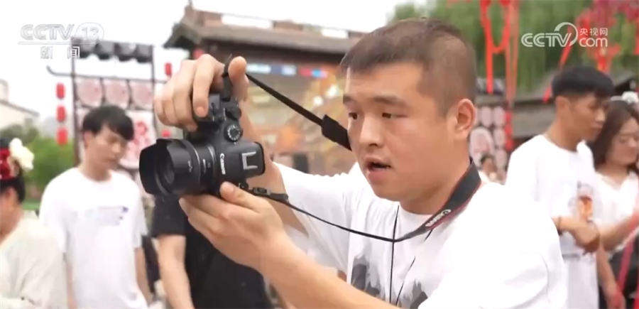 宋佳瑞之前是影樓里的攝影師,現(xiàn)在專職在景區(qū)拍照。他告訴記者,洛邑古城晚上來(lái)的游客更多,為了拍照效果,他還專門購(gòu)買了燈光、道具等設(shè)備。