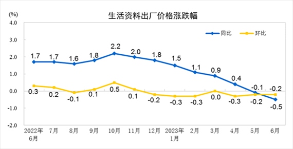 央視網(wǎng)消息:據(jù)國家統(tǒng)計(jì)局網(wǎng)站消息,2023年6月份,全國工業(yè)生產(chǎn)者出廠價(jià)格同比下降5.4%,環(huán)比下降0.8%;工業(yè)生產(chǎn)者購進(jìn)價(jià)格同比下降6.5%,環(huán)比下降1.1%。上半年,工業(yè)生產(chǎn)者出廠價(jià)格比上年同期下降3.1%,工業(yè)生產(chǎn)者購進(jìn)價(jià)格下降3.0%。