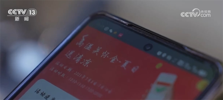 外賣騎手 白兆龍:從我的手機App上可以看到最近的防暑驛站,我這里還從驛站拿了十滴水、藿香正氣水,當身體遇到不適的時候,藥品可以及時供上,我上個月還領(lǐng)了400多塊錢的高溫關(guān)懷金。