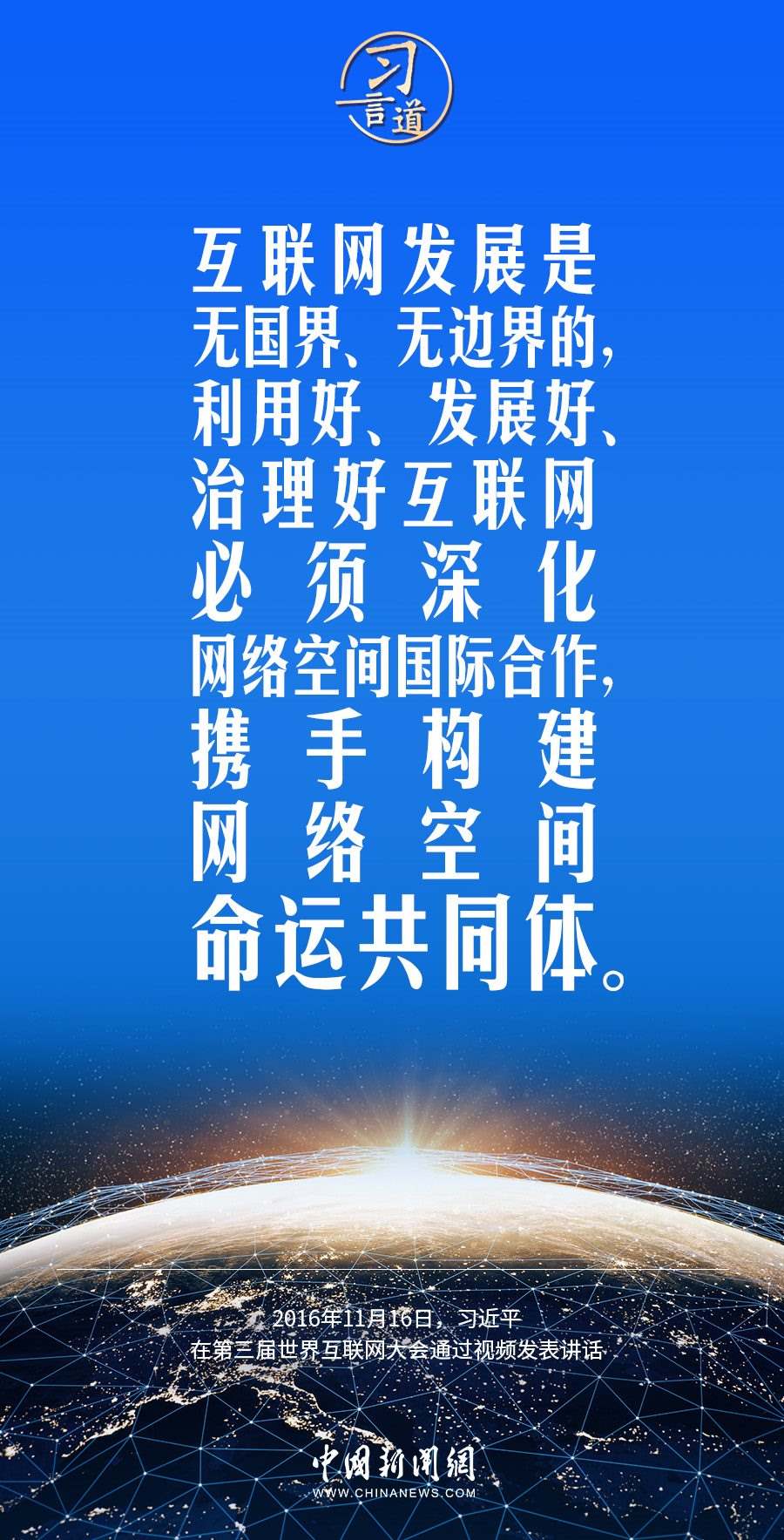 習(xí)近平總書記高度重視網(wǎng)絡(luò)空間國(guó)際合作,多次作出重要論述,強(qiáng)調(diào)要加快構(gòu)建網(wǎng)絡(luò)空間命運(yùn)共同體。