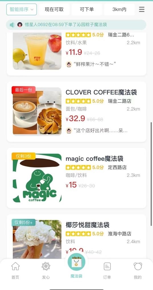 記者在上海登錄一個(gè)“盲盒”小程序,看到所在地周邊的部分商戶銷售一批名為“魔法袋”的產(chǎn)品,已經(jīng)吸引多個(gè)餐飲品牌加入。平均售價(jià)只有十幾元的“食物盲盒”,包含了多個(gè)烘焙產(chǎn)品。記者隨機(jī)選購了一款“魔法袋”,到店取貨后看到,售價(jià)11.9元的“魔法袋”里有4個(gè)蛋撻、2個(gè)肉松蛋糕。如果按照原價(jià)購買,這些東西應(yīng)該需要20多元。