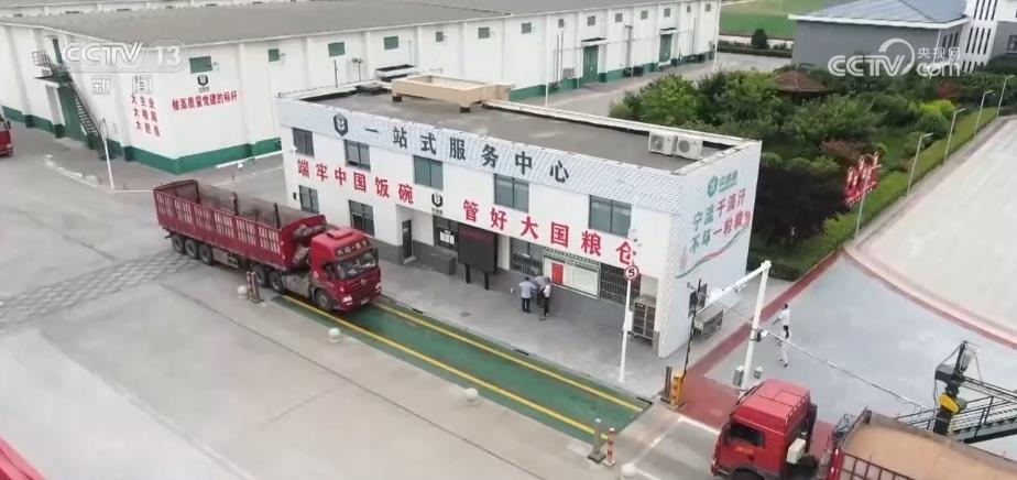 在一座座糧庫間,記者看到滿載小麥的一輛輛卡車正排著隊等待卸糧進倉。