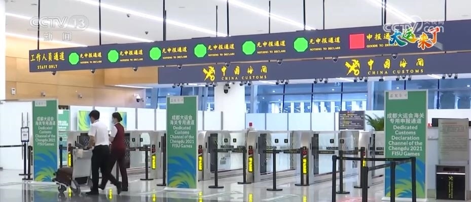 成都海關(guān)所屬雙流機(jī)場海關(guān)旅檢二科科長 李霄林:為了應(yīng)對大運(yùn)會人員集中通關(guān)的情況,我們設(shè)置了6條大運(yùn)會海關(guān)專用通道,并對集成了手提行李機(jī)檢等8項功能的智能通道進(jìn)行了升級,由原來的“單通道”升級為“雙通道”,單人的通關(guān)速度提升了40%。