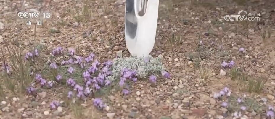 科考隊員 陜西省動物研究所博士 李印虎:我剛才在這一大片范圍觀察了一下,大概一共有十幾種植物,基本都是藏羚羊愛吃的。這個黃色的小花很好看,它的小葉子裂開成了兩片,所以叫它二裂委陵菜,還發(fā)現(xiàn)了它的親緣種,有那個小葉金露梅,還有多裂委陵菜,藏羚羊都會吃。