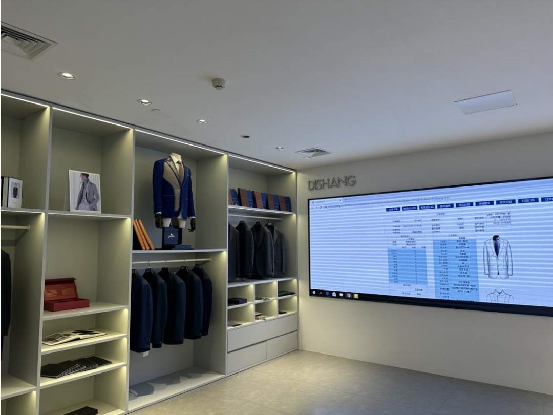 走進迪尚集團辦公區(qū),多塊電子屏上,數(shù)據(jù)不斷更新,條目不斷變換,數(shù)字感十足。如果不是隨處可見的服裝展示,很難想到這是全國最大的服裝進出口企業(yè)之一。