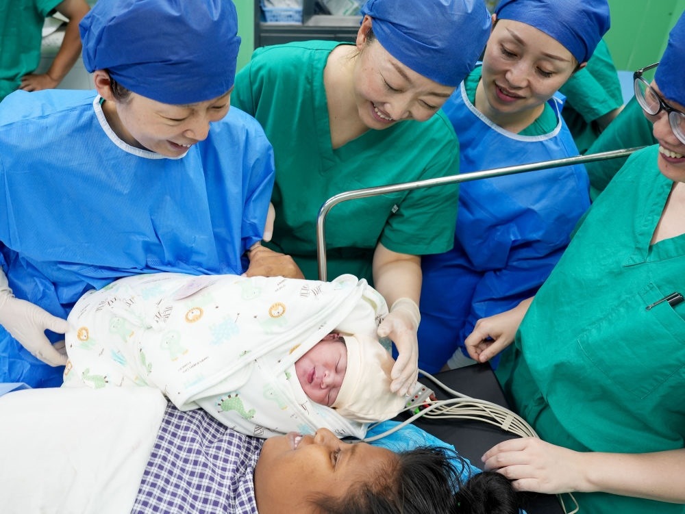 中國海軍“和平方舟”號醫(yī)院船在基里巴斯為29歲的塔拉瓦居民德阿瑞接生了一名“和平寶寶”(2023年7月16日攝)。新華社發(fā)(劉偉 攝)