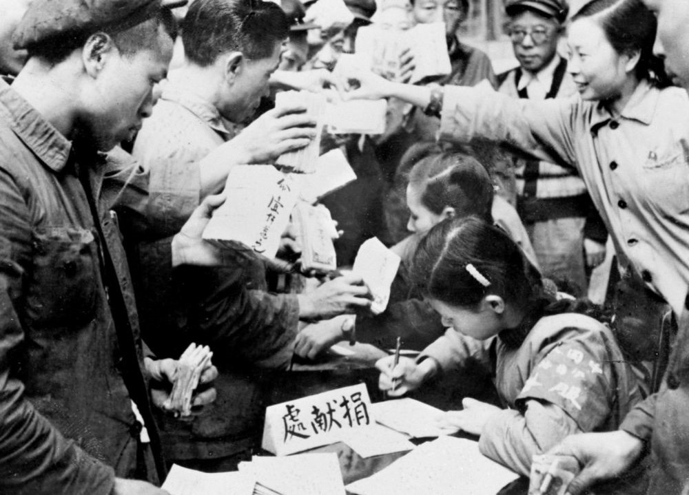 ——知識分子為支援前線的愛國事業(yè)鼓與呼,醫(yī)務(wù)工作者組織大批醫(yī)療隊奔赴前線,“為最可愛的人購買飛機(jī)大炮”的捐款熱潮席卷了每一個社會層面、每一個社會角落……