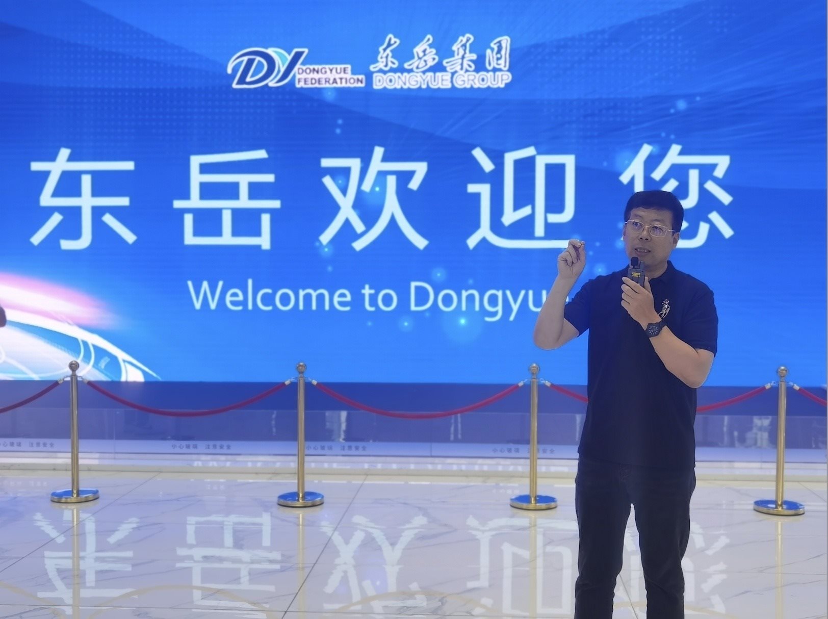 “高質(zhì)量發(fā)展調(diào)研行”采訪團(tuán)來到位于山東淄博市的山東東岳氟硅科技集團(tuán)調(diào)研,集團(tuán)副總裁李玉文在做講解