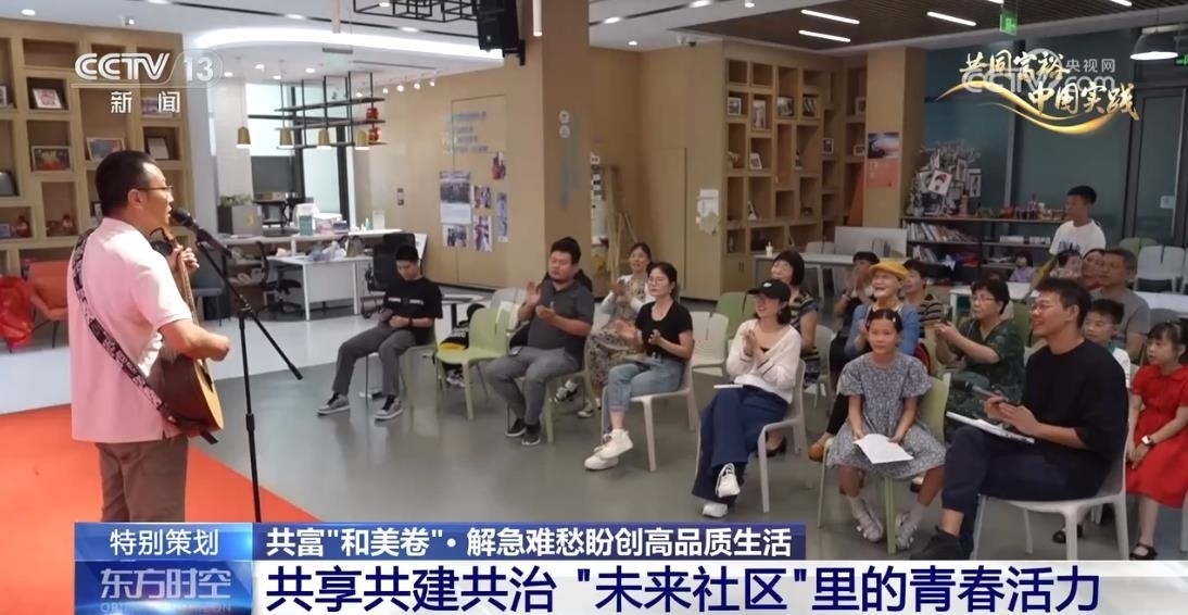 在楊柳郡社區(qū),除了兒童的成長備受關(guān)注,年輕人的文化生活和社交需求也能得到滿足。社區(qū)創(chuàng)辦了21個(gè)興趣社群,邀請居民擔(dān)當(dāng)社群主理人,定期開展活動。高東新是音樂社群的主理人,他已經(jīng)組織了18場音樂會,還在公共空間打造了別具一格的“社區(qū)音樂廳”。