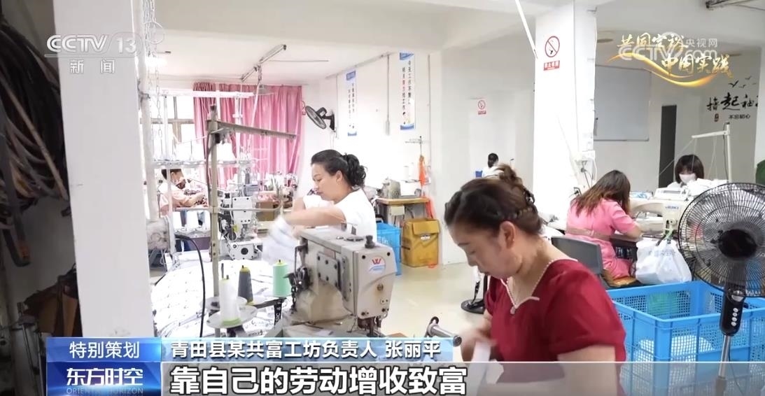 浙江青田縣某共富工坊負(fù)責(zé)人 張麗平:做服裝來料加工多年,就想把自己的技術(shù)帶回來,讓我們周邊的婦女靠自己的勞動增收致富。