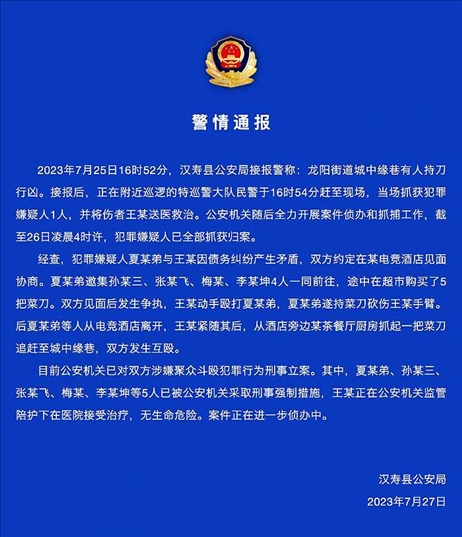 ·湖南漢壽警方通報“多人當街持刀互砍”:債務問題引發(fā),已刑事立案。