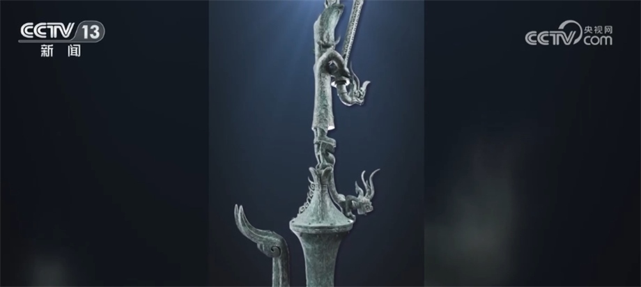 經(jīng)過考古人員科學研判和仔細比對,在“合體”的“鳥足倒立頂尊神像”基礎上又陸續(xù)識別出三號坑出土的“爬龍銅器蓋”、八號坑的“銅持龍立人像”“銅杖形器”等器物都是這件文物的重要組件,合體后整件文物通高達2.53米。
