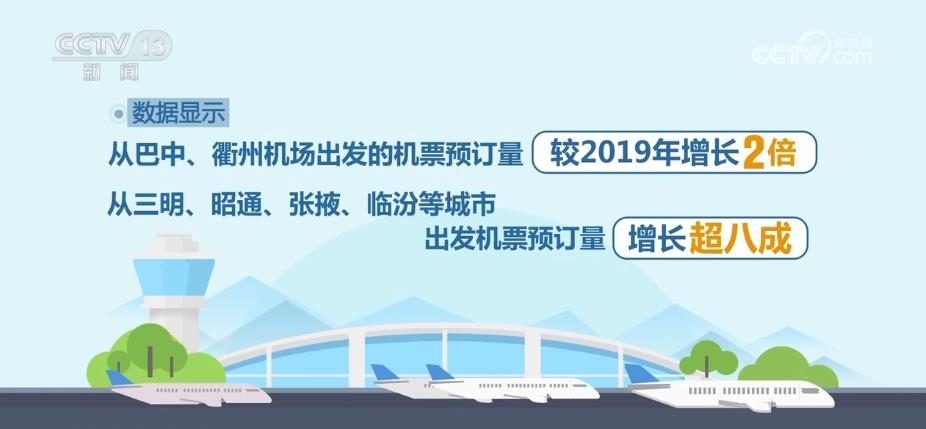 2023年暑運(yùn)期間,三四線航空市場開始顯現(xiàn)出熱度。數(shù)據(jù)顯示,從巴中、衢州機(jī)場出發(fā)的機(jī)票預(yù)訂量較2019年增長兩倍。從三明、昭通、張掖、臨汾等城市出發(fā)機(jī)票預(yù)訂量增長超八成。