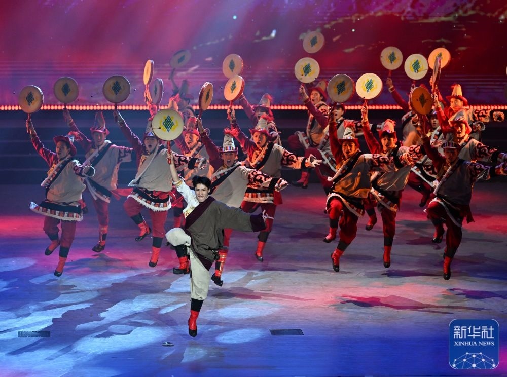 ↑7月29日,演員在聯(lián)歡會(huì)現(xiàn)場(chǎng)表演舞蹈。新華社記者 蔡湘鑫 攝