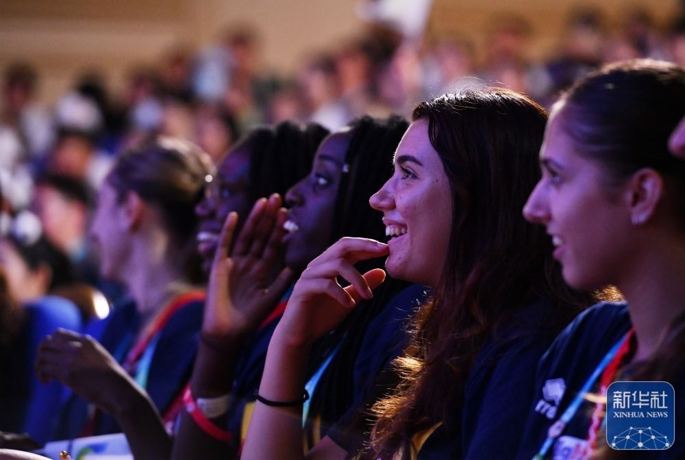 ↑7月29日,外國運(yùn)動(dòng)員在聯(lián)歡會(huì)現(xiàn)場(chǎng)觀看節(jié)目。新華社記者 張端 攝