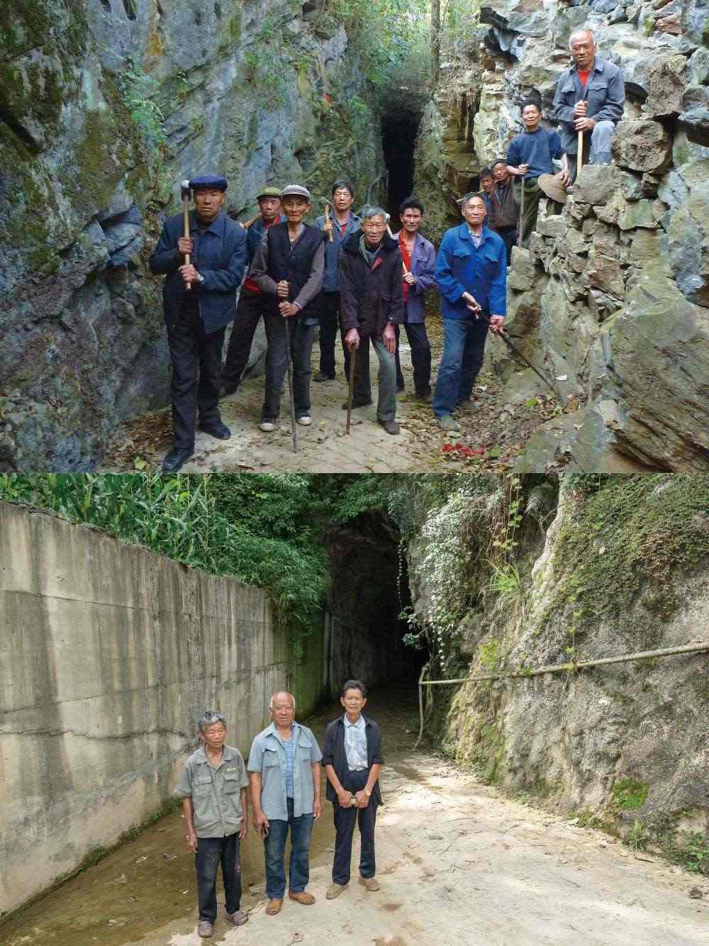 這首生命樂章的序曲是“人定勝天”:劉家塘村四面環(huán)山,地勢(shì)低洼,多雨季節(jié)洪水泛濫,田地絕收。1962年,村黨支部決定開鑿隧洞。隨后,村民開始了“驚人之舉”——全村男女老少齊上陣,以鐵錘、鋼釬為主要工具,歷時(shí)近半個(gè)世紀(jì),鑿?fù)烁?.5米、寬1.5米,全長300米的穿山隧洞,徹底解決了水患。后來,這個(gè)隧洞被命名為“勝天洞”。