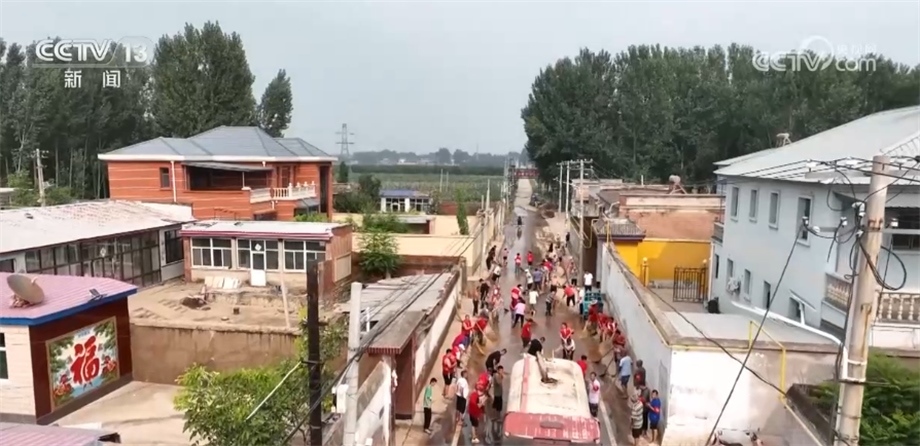 總臺記者 楊海靈:我現(xiàn)在來到了丁家莊村,洪水來的時(shí)候,這里最深的積水達(dá)到了兩米多,所幸在洪水到來之前,村民全部安全轉(zhuǎn)移。眼下,洪水退下,村民自發(fā)返回家中,在村干部的帶領(lǐng)下進(jìn)行清淤作業(yè)。