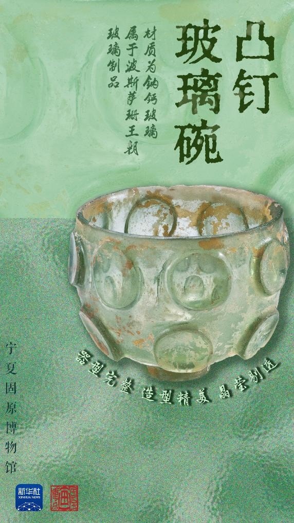 不同于我國(guó)古代的鉛鋇玻璃,這件出土于寧夏固原的凸釘玻璃碗的材質(zhì)是鈉鈣玻璃,是經(jīng)絲綢之路遠(yuǎn)道而來的“進(jìn)口貨”——波斯薩珊王朝玻璃制品。據(jù)張強(qiáng)介紹,這只玻璃碗體現(xiàn)了薩珊玻璃器形和紋飾上的獨(dú)特風(fēng)格以及精湛的磨琢工藝,是我國(guó)出土的薩珊玻璃器的代表,說明當(dāng)時(shí)西方玻璃器經(jīng)絲綢之路輸入中國(guó),也反映出固原作為絲綢之路東段北道的必經(jīng)之地,在當(dāng)時(shí)國(guó)際商業(yè)貿(mào)易和文化傳播中的重要地位。