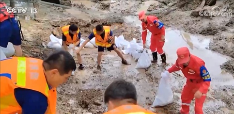 安能搶險(xiǎn)救援隊(duì)隊(duì)員 李云:現(xiàn)在這邊是一個(gè)管涌,我們前期已經(jīng)進(jìn)行了一個(gè)處理。這邊我們做的是一個(gè)(返濾)圍井之后,在里面會(huì)已經(jīng)鋪設(shè)了細(xì)沙,現(xiàn)在我們進(jìn)行鋪設(shè)中石,防止泥土進(jìn)一步流失。