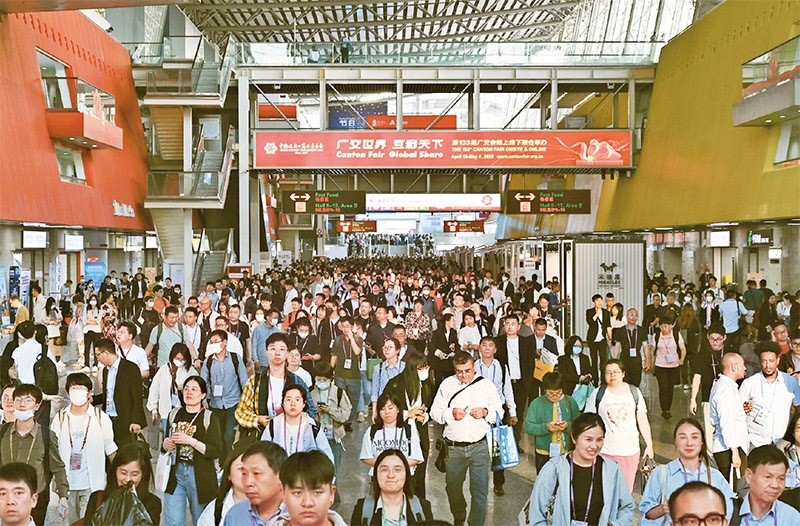 第133屆中國進(jìn)出口商品交易會(廣交會)線下展于2023年4月15日至5月5日分3期舉辦,同時線上平臺全年常態(tài)化運營。本屆廣交會展覽面積、參展企業(yè)數(shù)量均創(chuàng)歷史新高,吸引220多個國家和地區(qū)的數(shù)十萬采購商報名參會。圖為4月26日拍攝的廣交會現(xiàn)場。 中新社記者 陳楚紅/攝